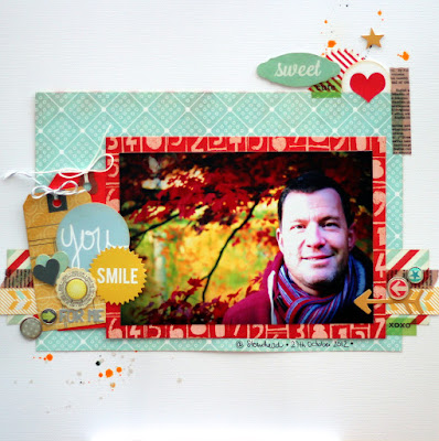 I thought this sketch was just right for this time of year as it looks like a big present so I scrapped a photo of my nephew from last Christmas.